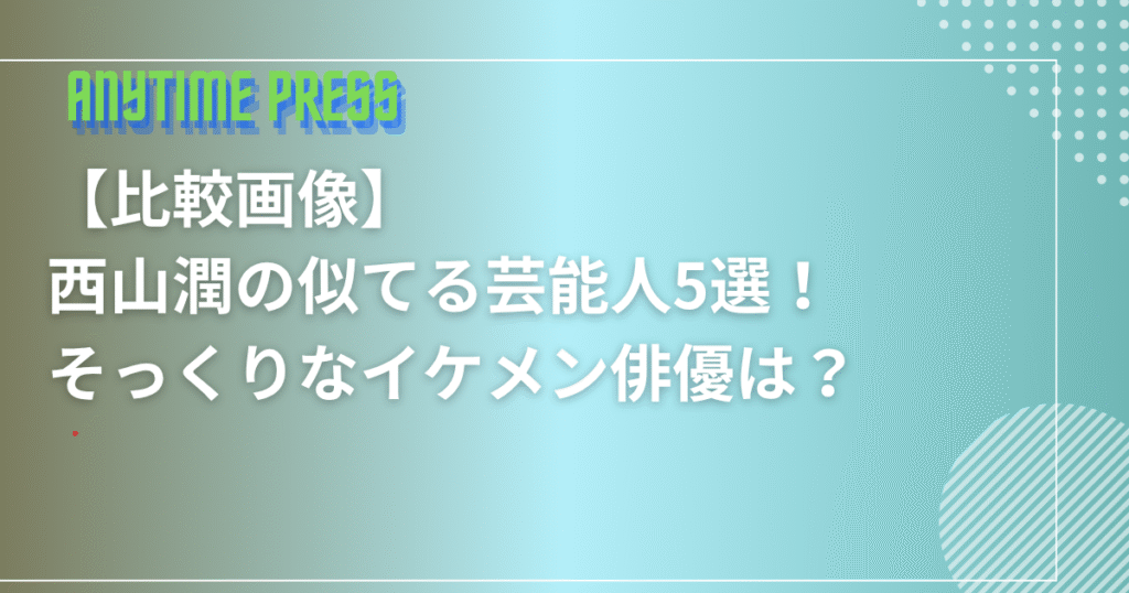 西山潤さんに似ている芸能人が誰か気になる人が多いようです。 そこで今回の記事では、 西山潤さんに似てる芸能人は誰なのか知りたい などの疑問にお答えしますね。 是非、最後まで読んでください。 【西山潤は似てる芸能人5選!唐沢寿明にそっくりと話題... -