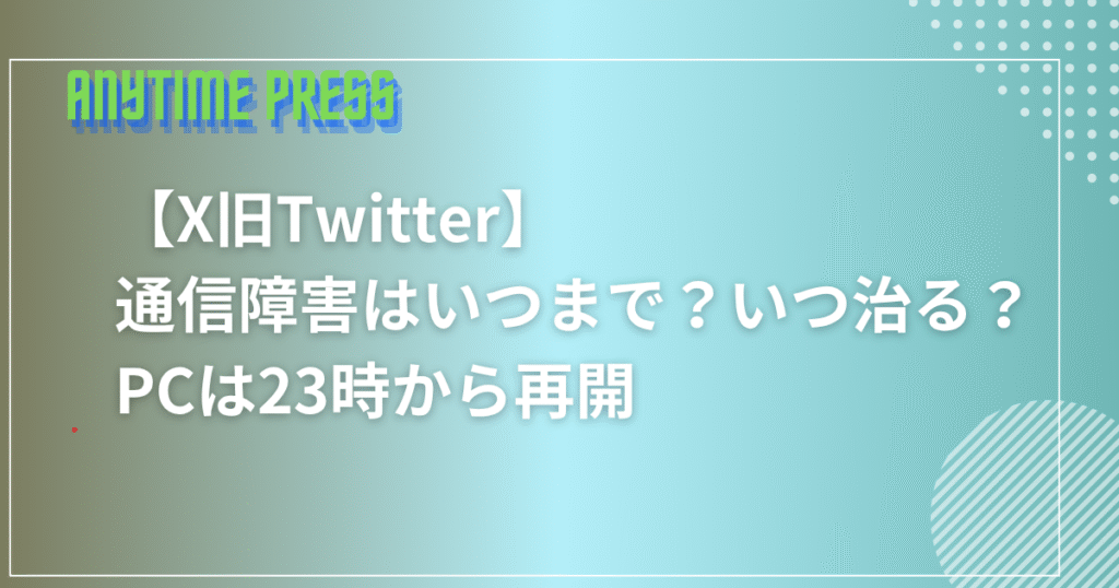【X】通信障害はいつまで?いつ治る?PCは23時から再開【Twitter】