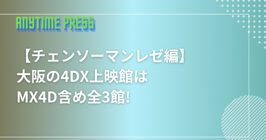 【チェンソーマン】4DXはどこ?大阪の上映館はMX4D含め全3館【レゼ編】