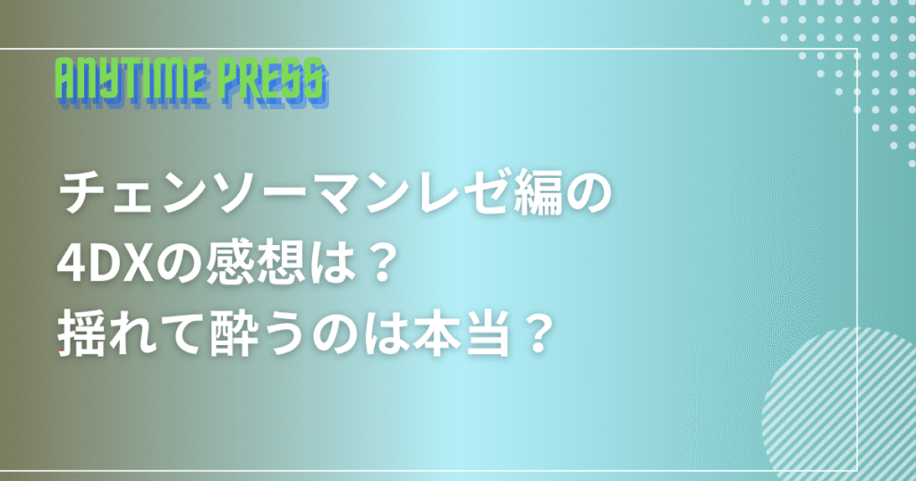 【チェンソーマンレゼ編】の4DXの上映が始まります。 そこで チェンソーマンレゼ編の4DXの感想を知りたい。 揺れがすごくて酔うって本当? 4DX観るにあたって気をつけておくことある? などの疑問にお答えします。 是非最後まで読んでくださいね。 【チ... -