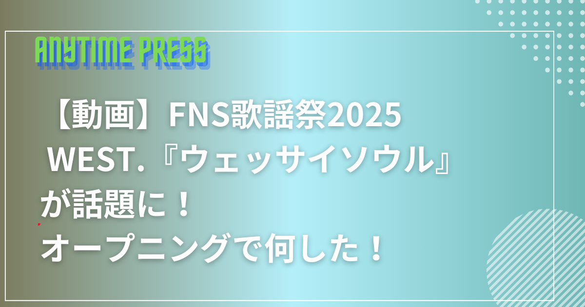 【FNS歌謡祭2025冬】で WEST.が『ウェッサイソウル』披露するということで話題になっています。