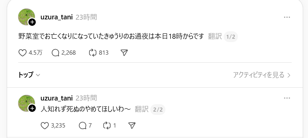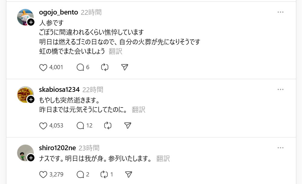 【Threads】で『きゅうりのお通夜』が盛り上がっています。
