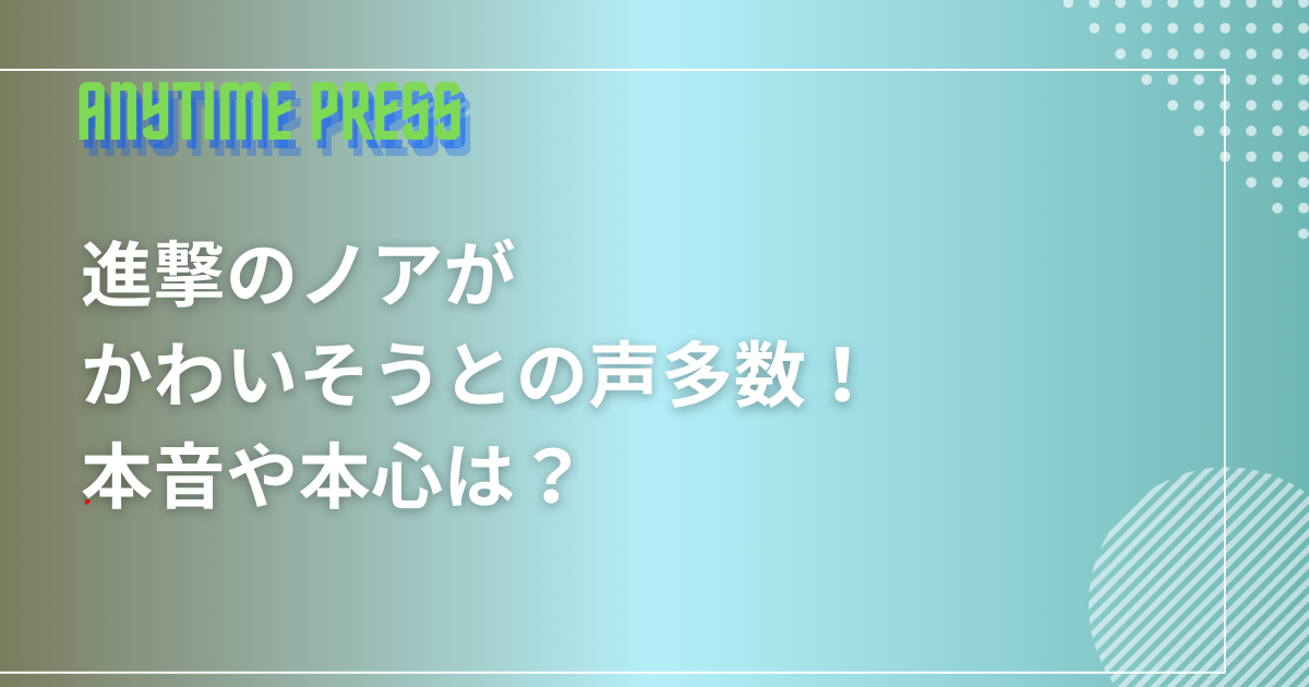 そこで、ノアさんの本音や受け入れた理由などを深堀りしていきたいと思います。